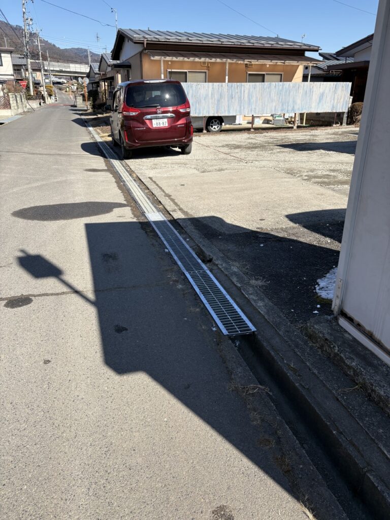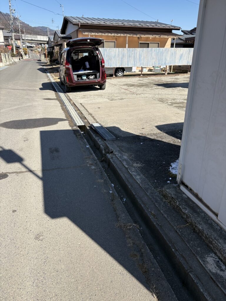 子ども食堂入口の駐車場を整備が完了したのですが、こちらの側溝を通れるようにしてほしいとの要望があり、大家さんにお願いしたところ、快くお許しいただけたので、さっそく施工させていただきました。
