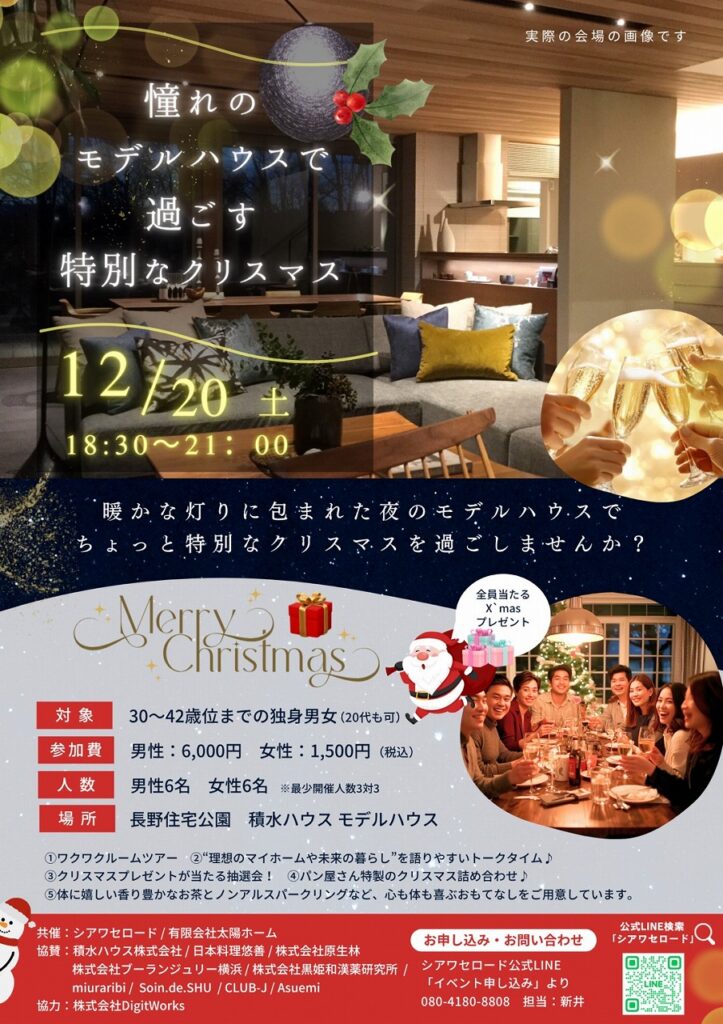 12月20日に長野住宅公園内積水ハウスSHAWOODモデルハウスにおいて、ながの結婚相談所 シアワセロードさんとのコラボ企画、クリスマスパーティーを開催することになりました!!