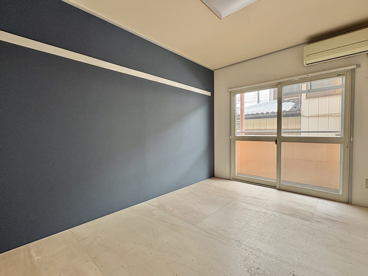 筆者直営で畳を撤去した、もと和室ですが、1面だけ壁紙の色を変えてもらいました。