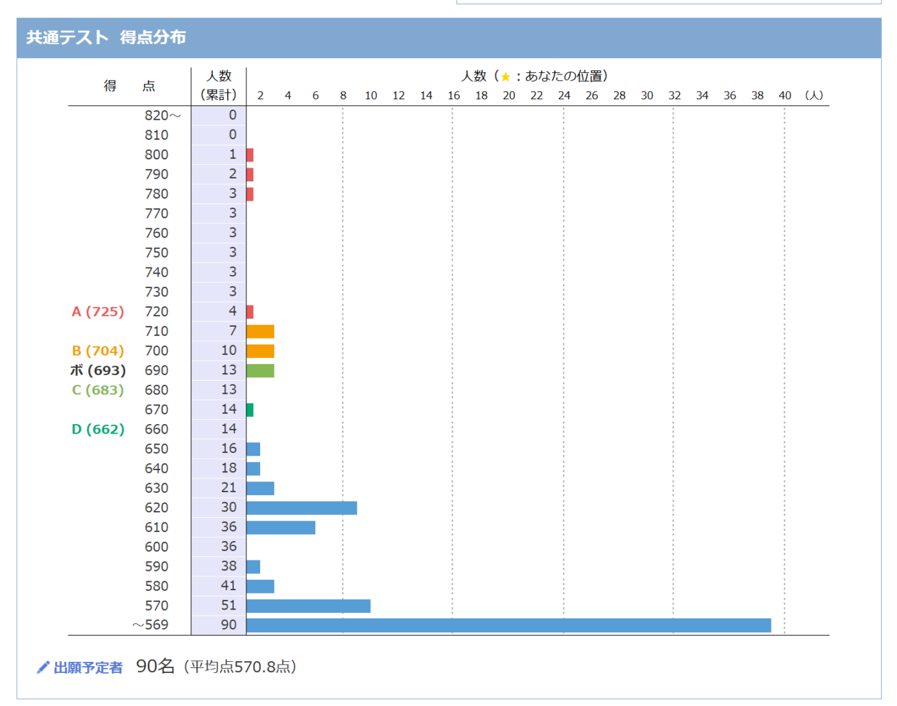 河合塾のバンザイシステムを見ると、志願者の得点分布もわかるので、自分の位置が分かりますね~。