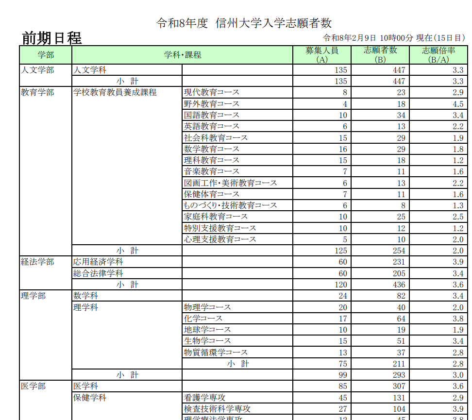 信大の地学は人気無いのかな??