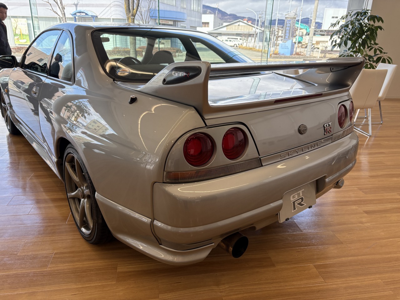 久しぶりに丸亀製麺に行ったら、となりの日産にR33が展示してあるのを息子が見つけ、食後に店内へ見せてもらいに行きました。
