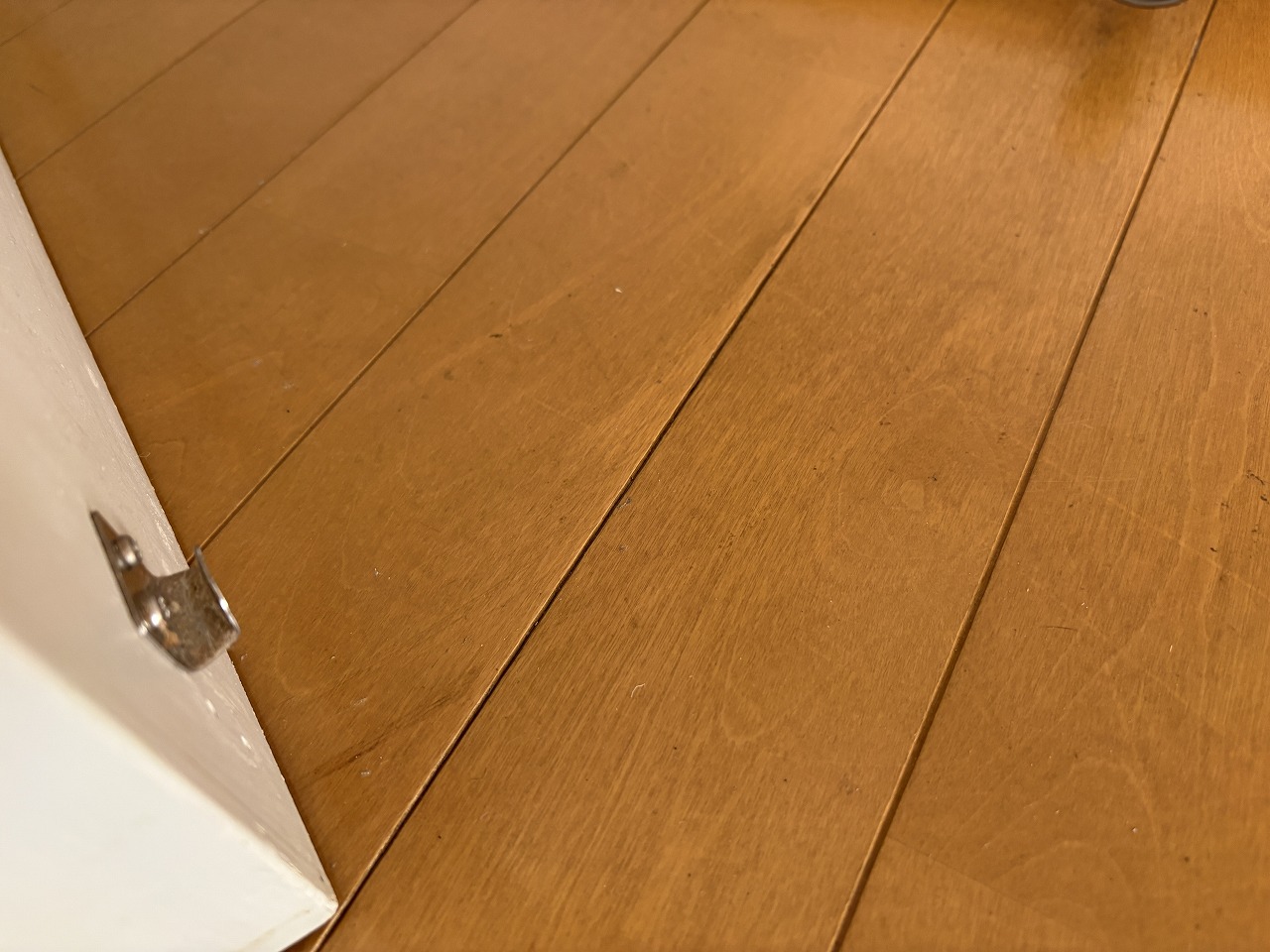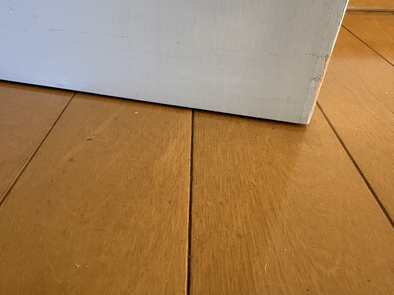 さっそく戻してみましたが、床との隙間がかなり大きくなりました。